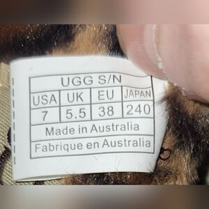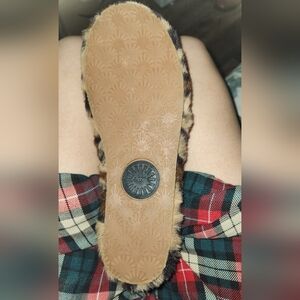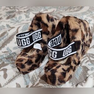 Stylish UGG slides with leopard pattern. Soft and plush feel. Features branded strap. Brand new never worn! They no longer sell these on the UGG site. These are the rare Fuzzy indoor and outdoor "Fluff Yeah" UGG slides. Wear them with shorts and a tang top, a dress, around your house in the spring and summer. Where them in the winter with socks on. Very versatile! Size 7 in women's. These are narrow not wide. Reasonable offers are accepted!