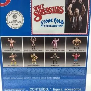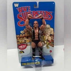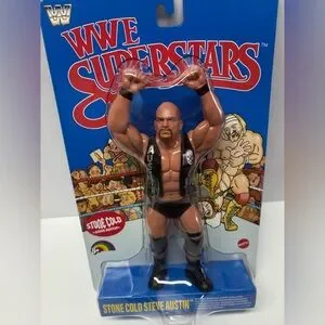 WWE Superstars Stone Cold Steve Austin action figure. Figure features black trunks, black vest, and knee pads. Great collectible display piece. Iconic wrestler styling and pose. Unique and very low production this figure is already backorder everywhere in Canada and USA you won’t find this piece of history Manufactured in 2026 anywhere in store. Very great item for any WWE or Steve Austin collector’s.