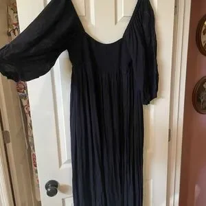 Free People Black Maxi Puff-Sleeve Dress XL