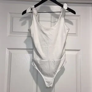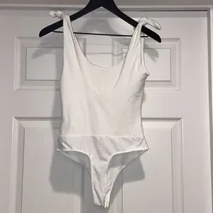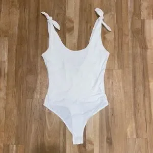 Lulus Pretty Pleased White Tie-Strap Bodysuit