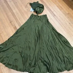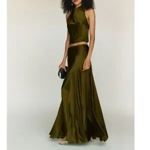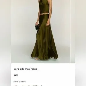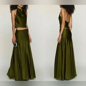 Sm Sera Silk Two Piece from Reformation, a two piece set with a sleeveless cowl neck top and matching maxi skirt.