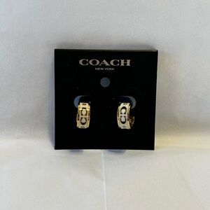 Coach Signature Enamel Gold Huggie Hoop Earrings