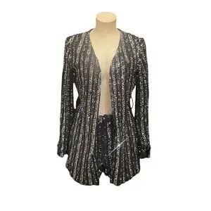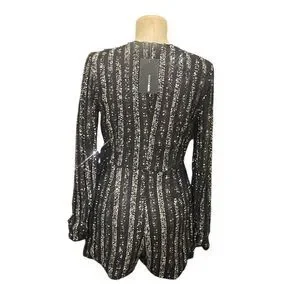 Stunning sequin jumpsuit. Black base with silver stripes. Long sleeves. Perfect for a night out.