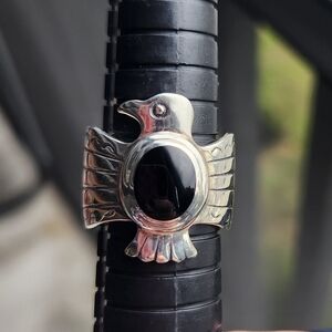 Handmade Sterling Silver 925 Onyx Thunderbird Ring Size 8