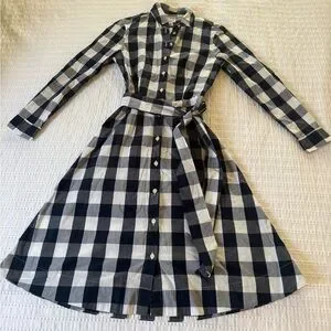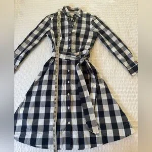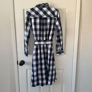J. Crew Navy and White Gingham Dress with Belt 00