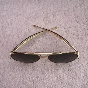 Super fun style that is designer inspired. Gold frame with oversized dark lenses.