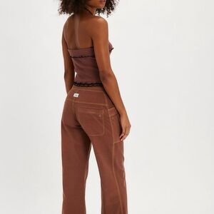 Features: Zip fly with lace-up front closure, contrast popstitching, workwear-inspired pockets, cuffed hems