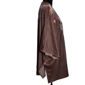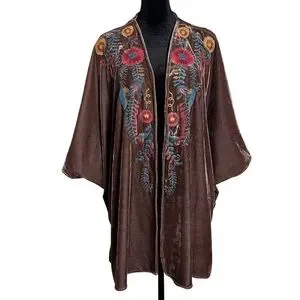Umgee Embroidered Velvet Kimono Cover Up S/M Boho Floral Velvet Duster