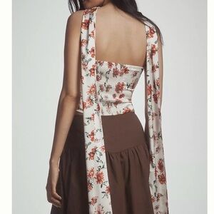 Chic strapless top with vibrant floral design. Perfect for pairing with skirts or pants. Stylish and versatile. The scarf is not attached. This can be worn with or without scarf. Super cute ties into a pony tail. Retails for 58.00 Sold out.