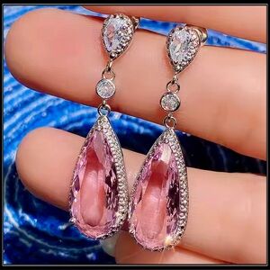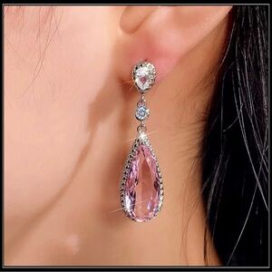 NEW WHITE GOLD PINK AMETHYST ORNATE DROP 3ct PEAR EARRINGS