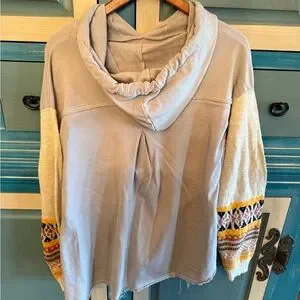 Casual easel hoodie in light beige. Soft knit texture with drawstring hood. Simple, versatile styling for everyday wear.