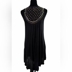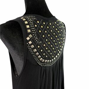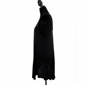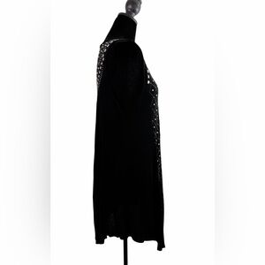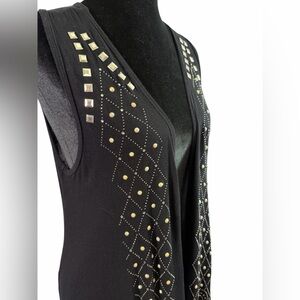 Vocal Black Long Vest with Rhinestone & Metal Studded Design, Size Large