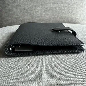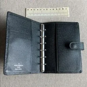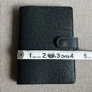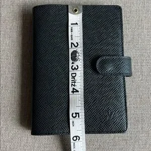 Authentic, great preowned condition, normal signs of wear. Functional snap button. Includes LV ruler insert.