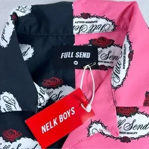 Full Send Nelk Boys Split Rose Logo Shirt Pink Black Button Up Size Medium NWT