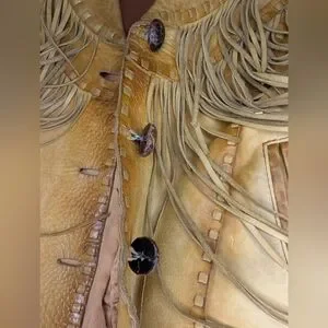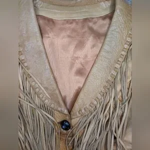 @thriftqueen66 Hey, thanks for reaching out. The spots you're talking about can be seen clearer in the 12th pic. This Danier came to me like this, so I'm not sure the culprit of the spots. It seems consistent with dye transfer from a lower quality piece of clothing.