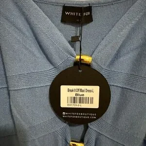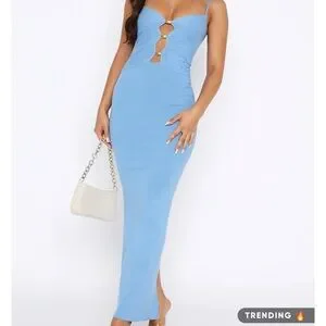 White Fox Boutique Sky Blue Maxi Dress with Gold Ring Cutouts