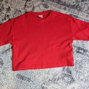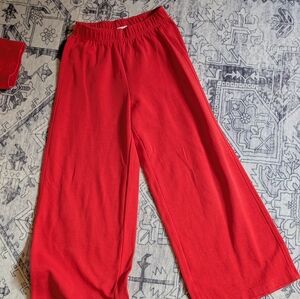 Comfortable and stylish red set perfect for traveling, spring days, and outdoor adventures. cropped top measures 17.5" pit to pit, and 16" long. Pants are 20" at waist and 30" long. Cotton/poly blend. Like new condition. I don't think these were ever worn.
