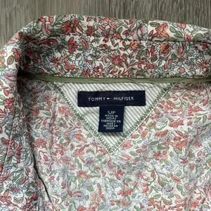 Tommy Hilfiger Women's Floral Shirt Dress Roll Tab Sleeve Boho Cottagecore S
