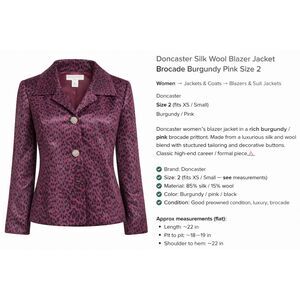 Doncaster Silk Wool Blazer Jacket Brocade Burgundy Pink Size 2