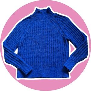 Elegant and warm turtleneck sweater. Perfect for layering. Rich blue hue adds a pop of color.
