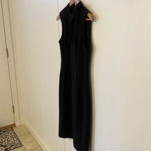 Chic black midi dress by Calvin Klein. Sleeveless design with a fitted silhouette. Ideal for elegant occasions.