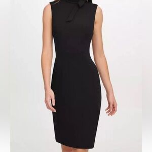 Calvin Klein Black Midi Pencil Dress Sleeveless With Bow Size 8
