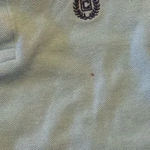 Chaps Blue Short Sleeve Polo Shirt Size 6: good condition. There is 1 mark on the shirt that I have been unable to remove, even with a stain stick. I have a close up picture of the mark. It’s very small. Aside from that no other holes or stains.