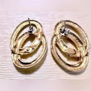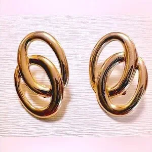 These striking earrings showcase a modern geometric design with interlocking ovals in a polished gold and silver finish. The open and airy structure adds depth and dimension, making them a standout accessory for any occasion.