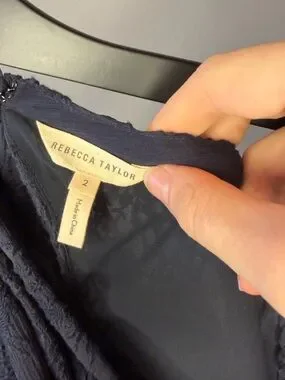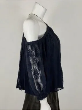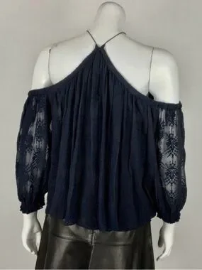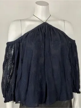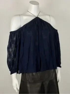 Rebecca Taylor is 100% Silk Navy Off-Shoulder Long sleeve Lace Blouse Size 2