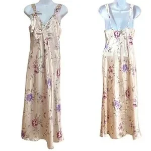 Vintage Cream Floral Satin Slip Dress Small Y2K Cottagecore Romantic Feminine