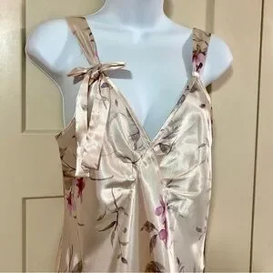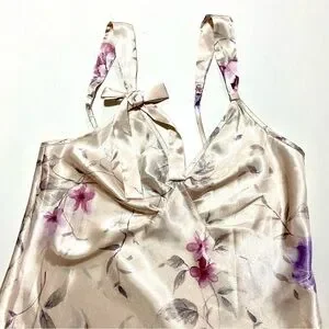 Jones New York Cream Floral Satin Slip Dress Size Small Spring Summer Dainty Feminine