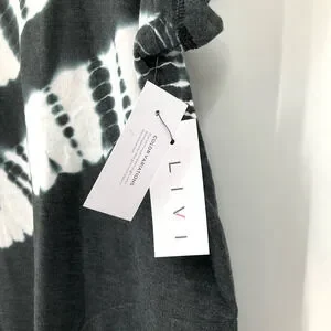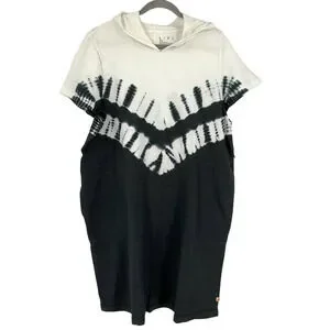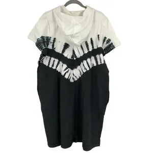 Livi Lane Bryant Short Sleeve Pullover Hoodie Sweater Dress Tie Dye White Charcoal