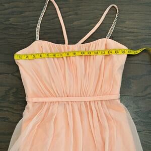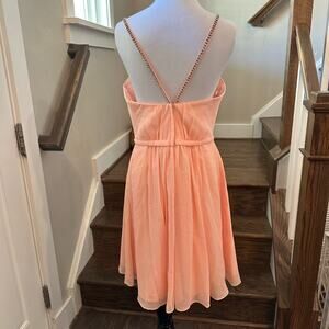 David's Bridal Short Peach Chiffon Dress with Rhinestone Straps Size 10 NEW