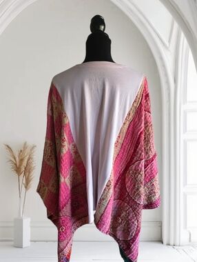 Upcycled Janis Joplin Tee With Kantha Sleeves, OS