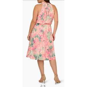 Adrianna Papell Pink Floral Halter Knee Length Chiffon Dress Sleeveless Tie