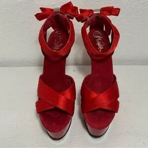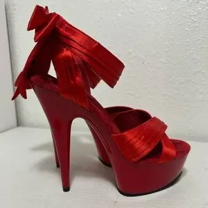Sexy red stiletto heels satin ribbon tie. Dancer sexy exotic club festival prom special occasion