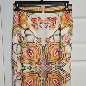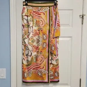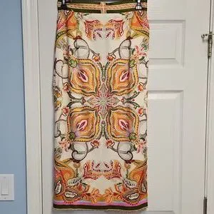 ANTONIO MELANI Satin Clio Scarf Wrap Maxi Skirt: Multi Color Print: Size- 10