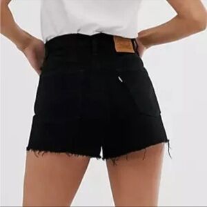 LEVI'S Ribcage Studded Rhinestone High Rise Jean Cut Off Shorts Black