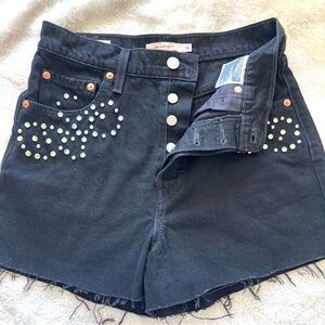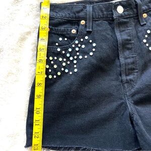 LEVI'S Ribcage Studded Rhinestone High Rise Jean Cut Off Shorts Black Size 26