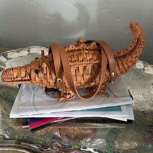 Charming woven alligator mini bag. Adds a whimsical touch to any look.