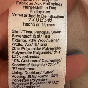 70% wool/20% polyamide/10% cashmere shell.