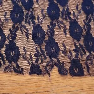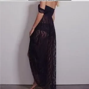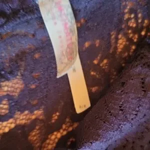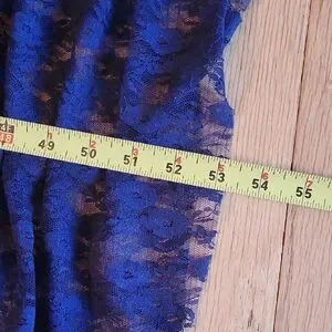 Chic sheer lace design. Sleeveless with a square neckline. Ideal for stylish evenings. Second hand 1 tear lower back could be whipstitched. 2 place along bottom could be trimmed off.