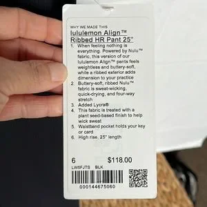 Lululemon Leggings Align Ribbed HR Pant 25” Black Size 6 BLK NEW