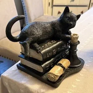 Ashland Black Cat Figurine on Books with Candle