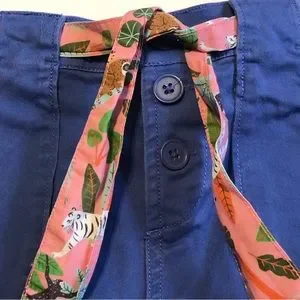 Boden Blue Twill Cargo Shorts With Pink Animal Print Belt Tie Size 13Y