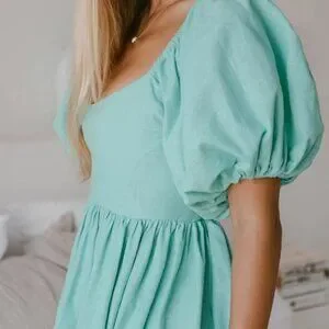 Cut from pure linen for drape and lightness, this romantic midi frock is framed by an on-trend oval neckline and smocked square shape back.