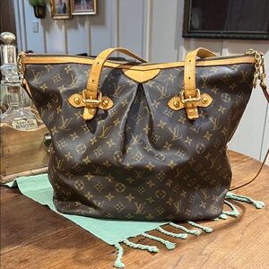 Chic Louis Vuitton tote with iconic monogram. Stylish and versatile for everyday use. Could be used as overnight bag as well. Has some wear on bottom edges. Has sharpie leak on interior as well. Otherwise, in great condition!
