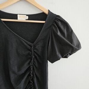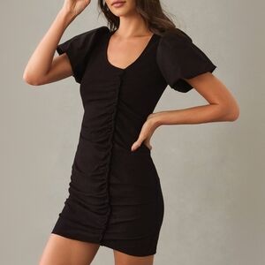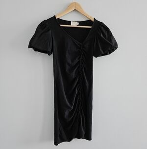 Nation LTD Sydney Gathered Mini Dress Jet Black Size XS Puff Sleeve Neutral