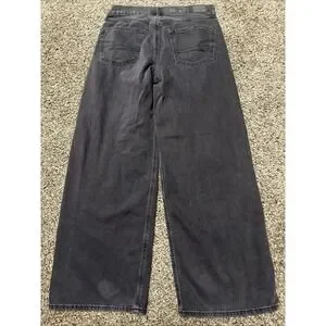 American Eagle Low Rise Skater Jeans Women's Size 8 Black Baggy Wide Leg Grunge