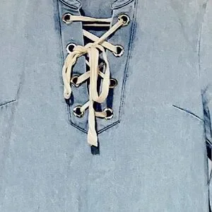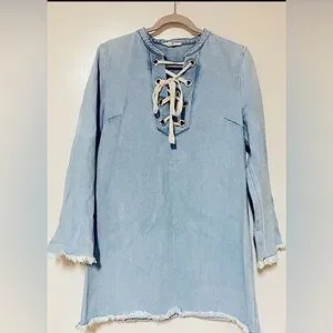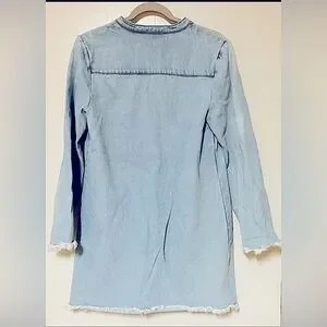 Sugar Lips Light Blue Denim Long Sleeve Mini Dress/Unfinished Hem/Tie Top/Size M